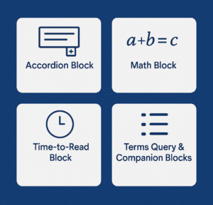 - Cleaner layout & content control — Hide blocks, use Accordion / Time-to-Read / Terms Query etc., and craft rich, organised pages without relying on many plugins — reduces maintenance overhead and plugin conflicts.